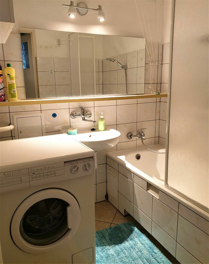 • Łazienka: wanna + prysznic, pralka, suszarka na ubrania.