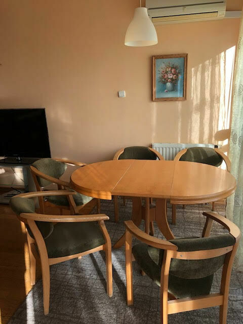 Pełne wyposażenie: lodówka, płyta grzejna, piekarnik, naczynia…, pralka, TV, klimatyzacja (salon-kuchnia), rolety zewnętrzne.