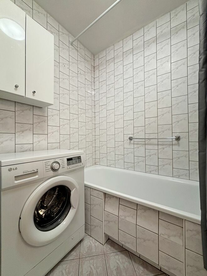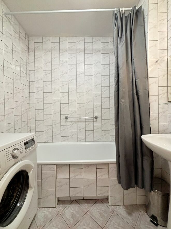 - łazienki z wanną, pralką, umywalką, lustrem,