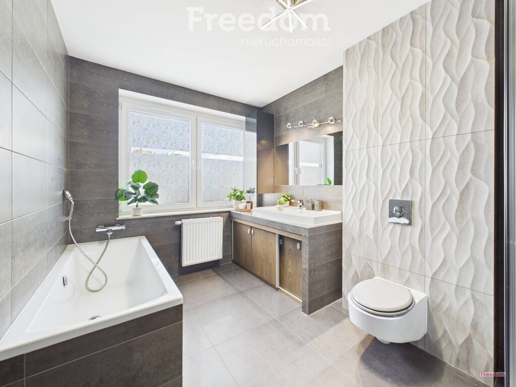 Na dolnym poziomie znajdują się łazienka oraz osobna toaleta, co