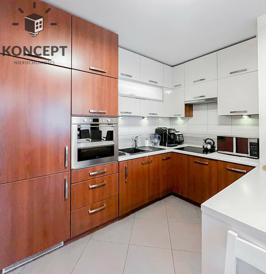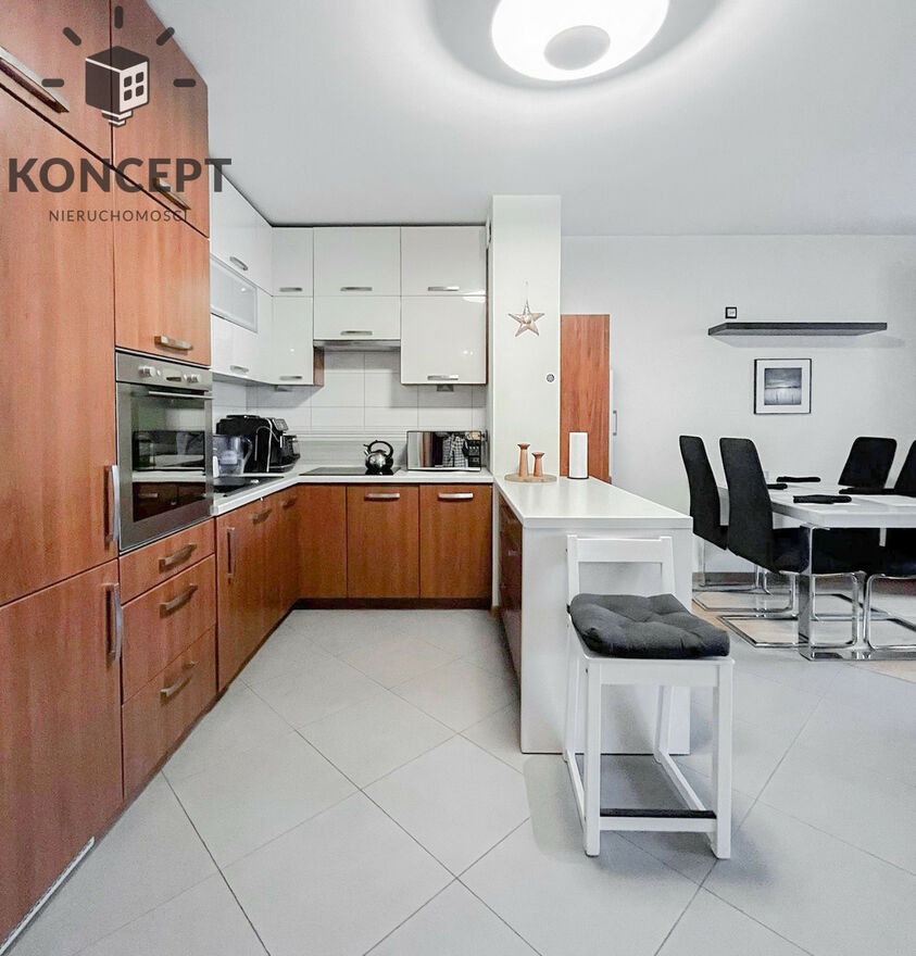 Mieszkanie umeblowane oraz wyposażone sprzęt AGD: piekarnik, płyta indukcyjna, lodówka, pralko-suszarka, telewizor, zmywarka, rozkładana sofa, szafy.