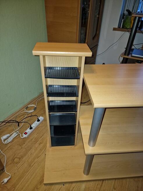 Regal pod sprzęt audio z miejscem na telewizor oraz płyty. Wymiary dł.109. Szer.46 wys.81 słupek na płyty 95.Stan dobry.