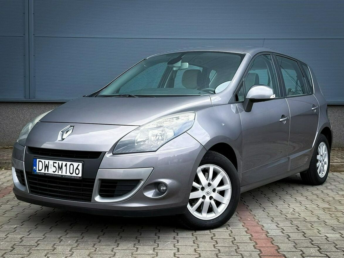Sprzedam Renault Scenic III generacji. Samochód jest w bardzo dobrym stanie wizualnym i technicznym. Silnik 1.5 dCi o mocy 110KM chodzi aksamitnie i cicho. Ma pełną moc, jest w bardzo dobrej kondycji. Skrzynia biegów automatyczna 6-stopniowa EDC pracuje płynnie i bez szarpnięć, jest na gwarancji do końca roku. Zawieszenie nie budzi zastrzeżeń, nic nie puka, auto prowadzi się jak po sznurku. Na chwilę obecną Scenic nie wymaga żadnego wkładu finansowego. Wnętrze utrzymane w bardzo dobrym stanie, jest czyste i pachnące.Powłoka lakiernicza jest oryginalna niemal na całej karoserii, powtórnie malowany był jedynie prawy błotnik. Lakier jest w bardzo dobrej kondycji, w pięknym, złotym kolorze. Auto stoi na oryginalnych felgach aluminiowych 16" z oponami letnimi w bardzo dobrym stanie. Do auta jest też drugi komplet kół na oponach zimowych.Scenic pochodzi z polskiego salonu i od nowości miał zaledwie dwóch właścicieli, a serwisowany był w ASO Renault. Stanowi to potwierdzenie jego przeszłości i prawdziwości niskiego przebiegu. Posiadam sporo faktur na serwis z ASO Renault, m.in. wymiana kompletnego rozrządu, wtryskiwaczy .