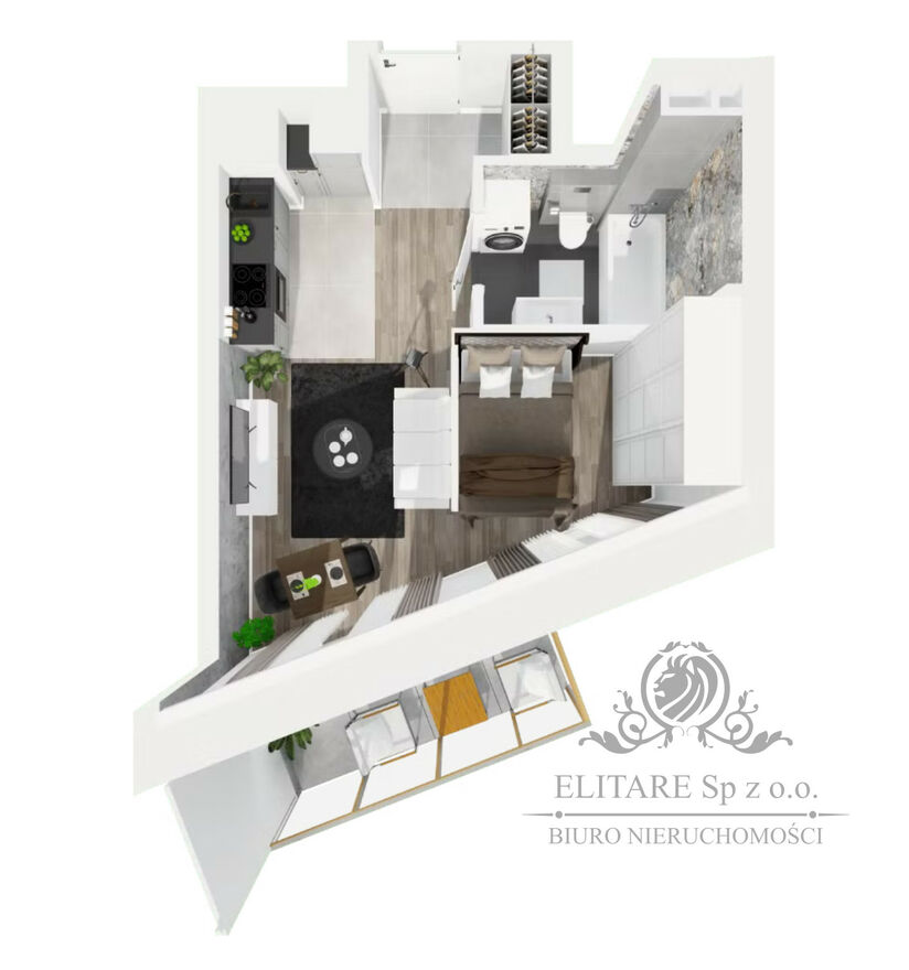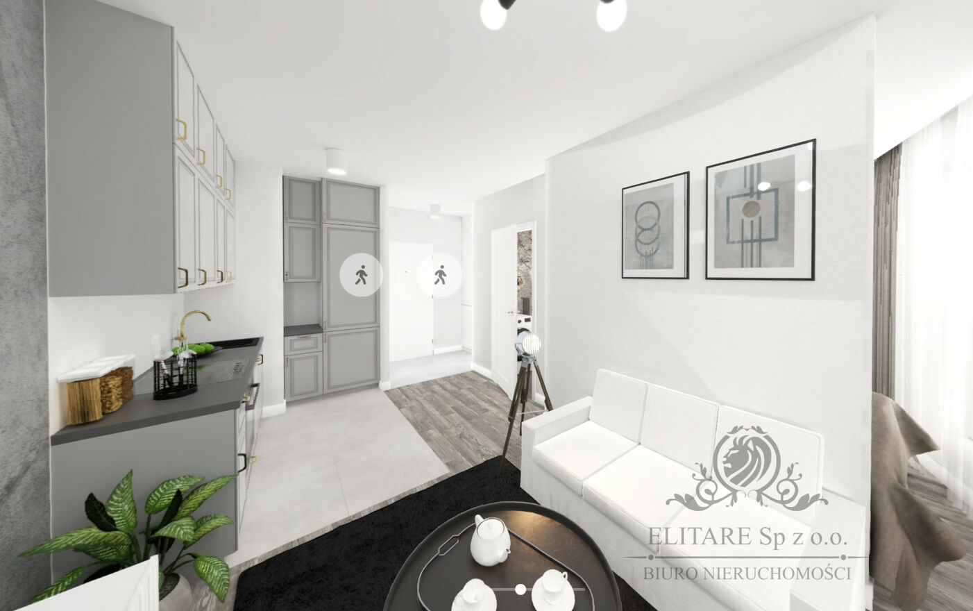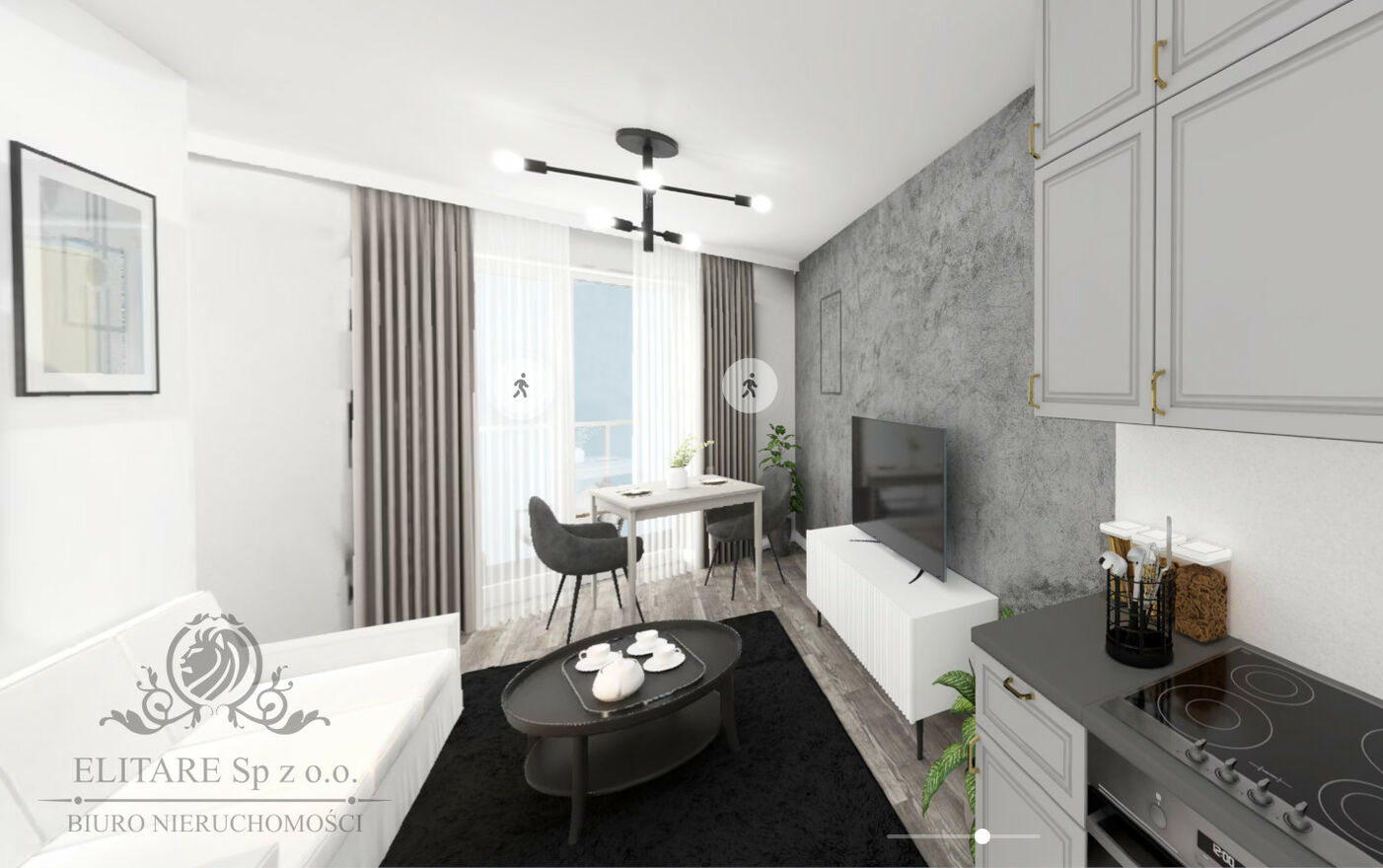 Mieszkanie składa się głównie z przestrzeni dziennej z aneksem kuchennym o pow. 21,03m2, z której można wydzielić półotwartą sypialnię, z salonu wyjście na balkon o pow. 6,36m2 z widokiem na zieloną przestrzeń osiedlową (widok z balkonu jest na jednej z wizualizacji 3D w ofercie), w mieszkaniu mamy łazienkę o pow. 4,24m2 i przedpokój z miejscem na szafę w zabudowie.