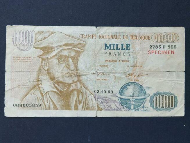 Belgia 1963 - 1000 franków - SPECIMEN W wypadku chęci zakupu przedmiotów proszę o kontakt przez sms'a. Zapraszam ...