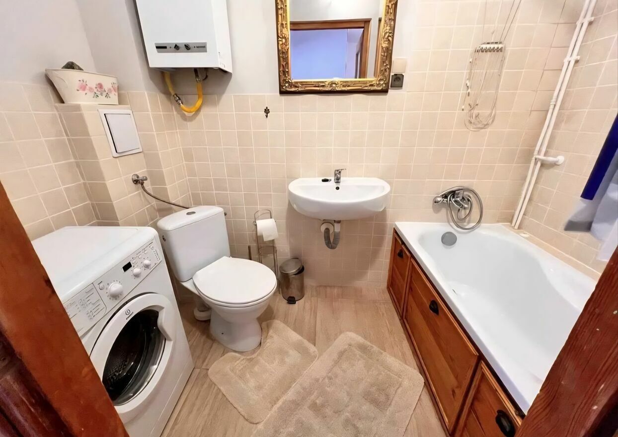 Jasne, przytulne wnętrza. Na podłodze deska. Mieszkanie jest w pełni wyposażone i przygotowane do zamieszkania. Kuchnia z meblami i sprzętem AGD. Dwa przestronne pokoje, łazienka z wanną i pralką. W przedpokoju dwie pojemne szafy w zabudowie. Ogrzewanie miejskie.