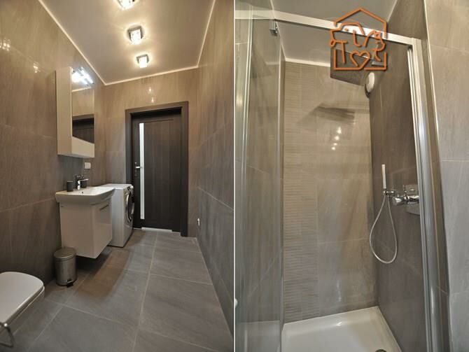 umywalkę, szafkę z lustrem, WC oraz pralkę
