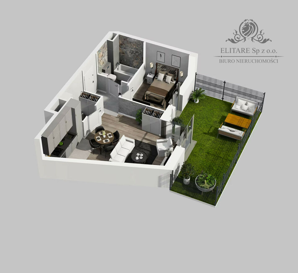 Wyjątkowe, 2 pokojowe mieszkanie o pow. 38,46m2 + wyjątkowym ogródkiem o pow. 21,19m2, jeżeli mieszkanie z ogrodem to konieczność to to mieszkanie jest dla Ciebie. Znajduje się na parterze w 6 piętrowym nowym bloku z windą z poziomu garażu. Powierzchnię użytkową mieszkania stanowi duży salon z aneksem kuchennym o pow. 21,76m2 z salonu wyjście na ogród 21,19m2 mamy też fajne narożne okno w salonie, widok na sąsiadujący blok z terenami osiedlowej zieleni i drogą dojazdową (widok z ogrodu jest na jednej z wizualizacji 3D dołączonej do oferty), w mieszkaniu jest też drugi osobny pokój o pow.8,11m2, łazienka o pow. 3,50m2, mamy też pomieszczeni idealne na garderobę o pow. 2,26m2 i przedpokój. Mieszkanie jednostronne, z ekspozycją z wschodnią. Ogrzewanie centralne miejskie, prąd, woda, kanalizacja, instalacje telefoniczna, internetowa, tv kablowa.Wysokość mieszkania 259cm.