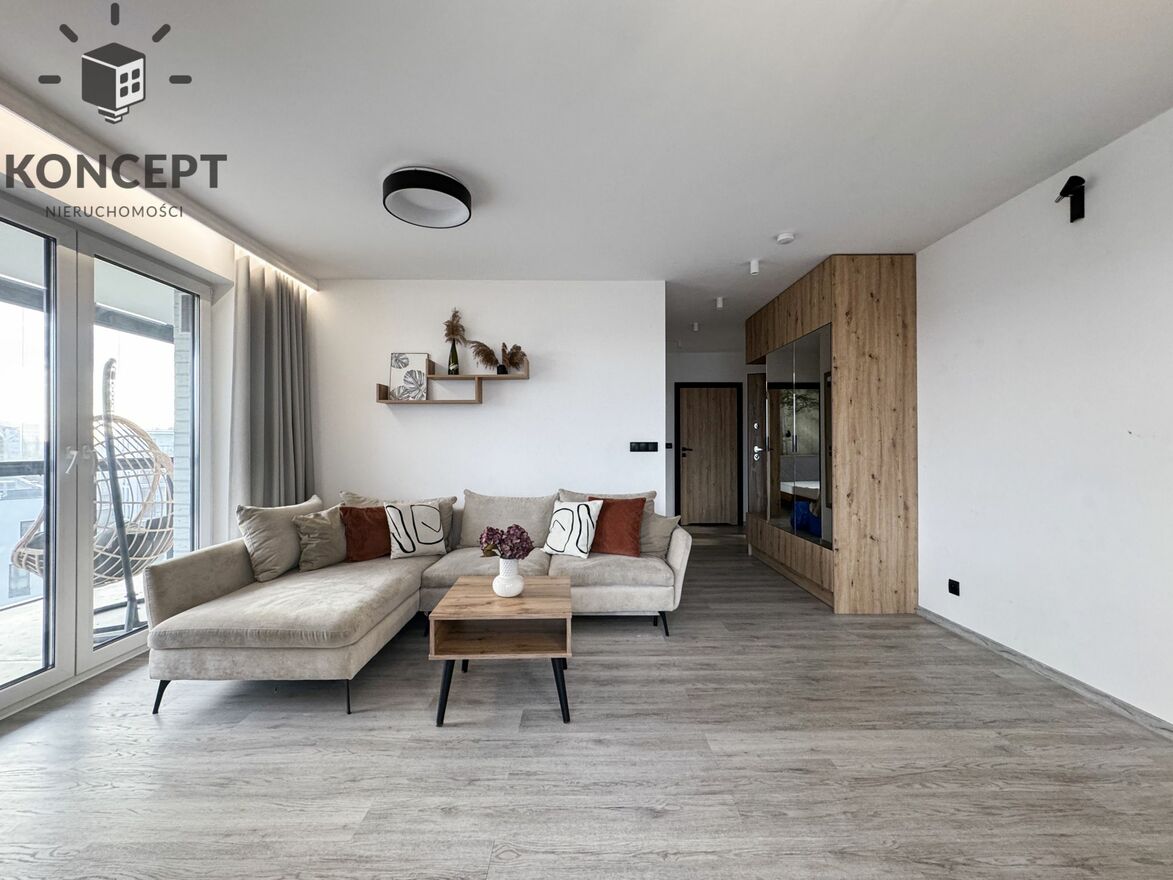 Do wynajęcia starannie zaprojektowane, bardzo jasne, 3-pokojowe mieszkanie położone na 6. piętrze nowoczesnego budynku z windą. Lokal wyróżnia się południową ekspozycją okien, dzięki czemu wnętrza są doskonale doświetlone przez cały dzień, niezależnie od pory roku. Z tarasu możesz podziwiać spektakularne wschody oraz zachody słońca!Mieszkanie zostało wykończone w 2023 roku i jest w pełni przygotowane do zamieszkania – bez dodatkowych nakładów.