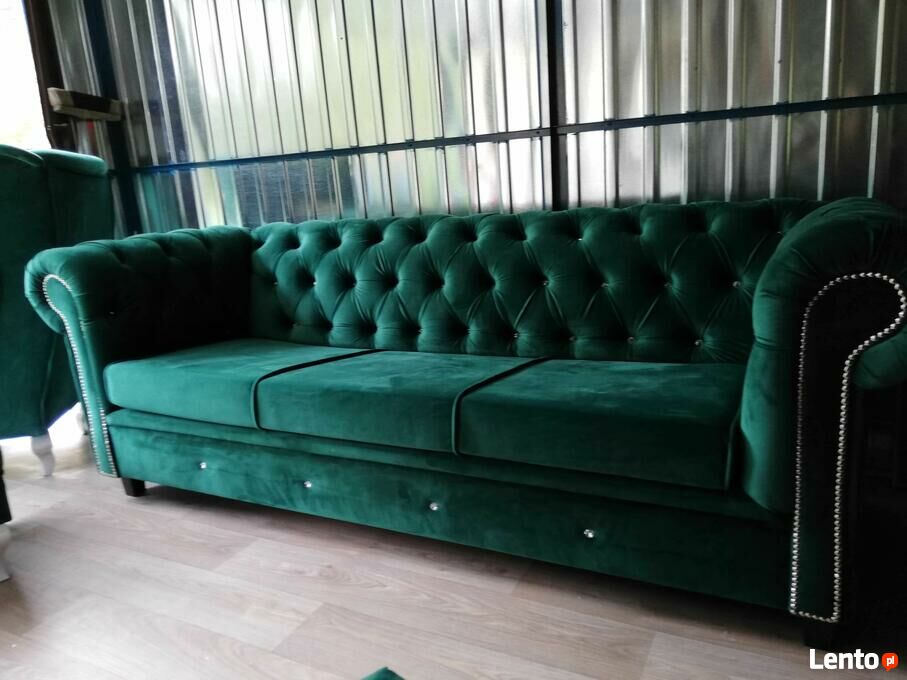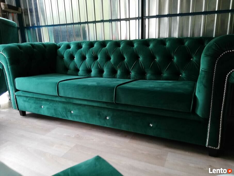 Sofa glamour z f spania chesterfield butelkowa zielen