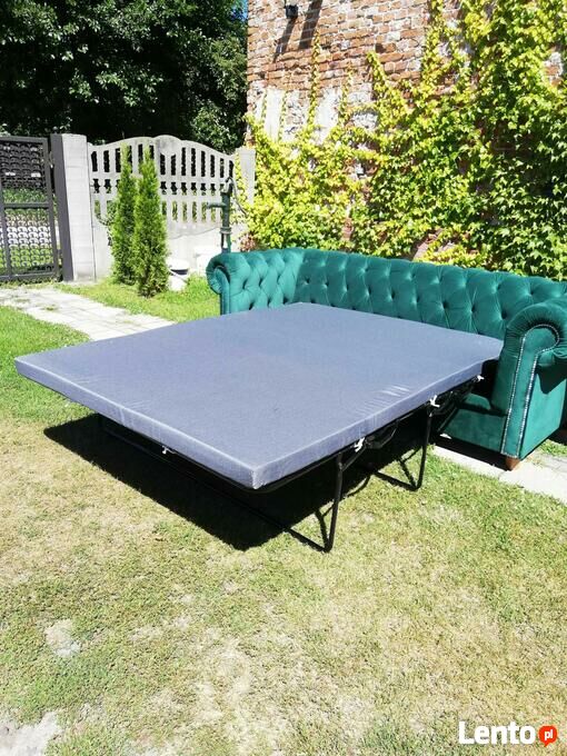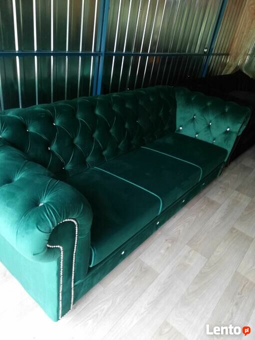 Sofa chesterfield butelkowa zielen bez kryształków głęboko pikowana 220 długa z f spania 140x195 bez nóg chromowanych. Możliwa wysyłka i opcja zmiany koloru. Cena dotyczy sofy w podstawowych materiałach. Materiały z wyższych grup za dopłatąSprawdź zainteresowanie tym ogłoszeniem