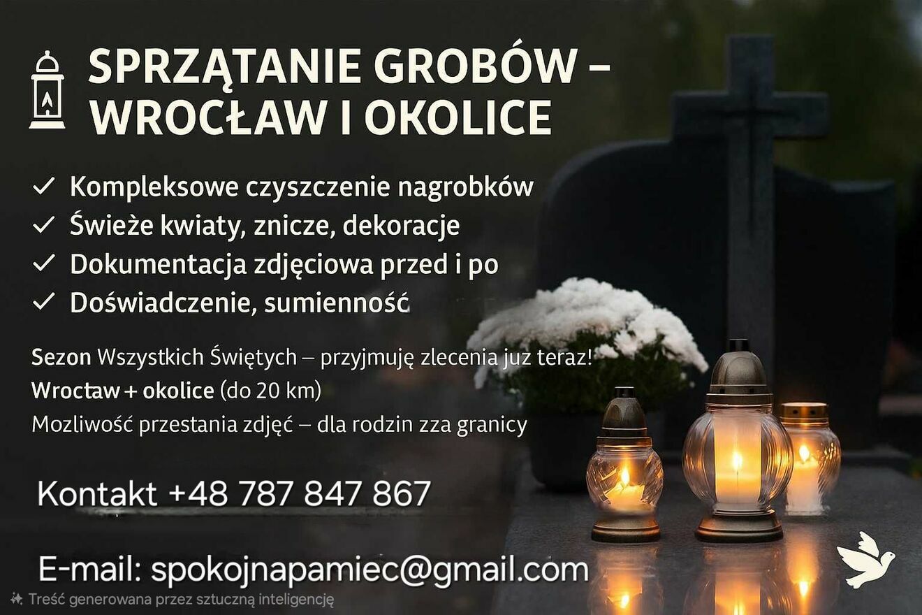 Profesjonalne sprzątanie i pielęgnacja grobów – Wrocław i okoliceZadbamy o miejsce spoczynku Twoich Bliskich z troską, dokładnością i pełnym poszanowaniem.