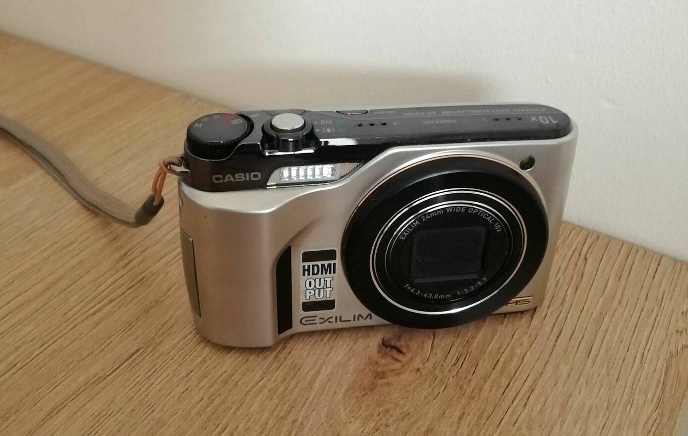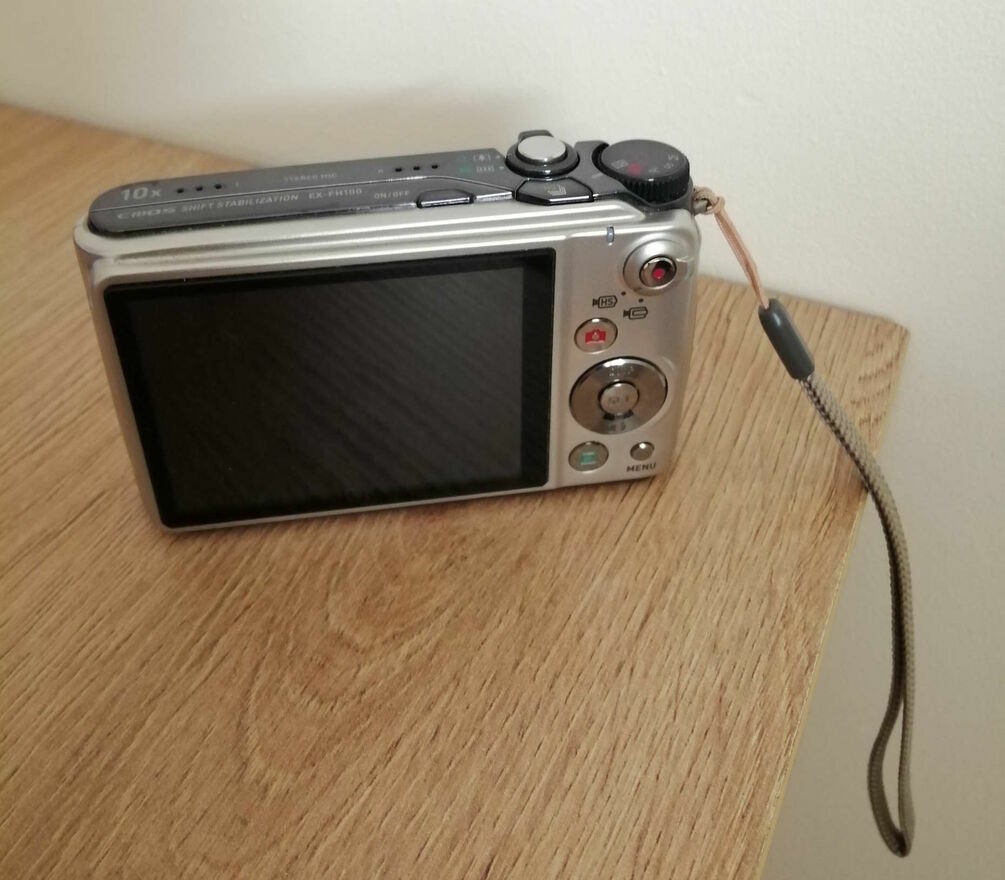 Sprzedam digitalny aparat fotograficzny CASIO EX-FH 100, 24 mm, zoom optyczny 10x, z kartą pamięci 16 GB, ładowarką do baterii, okablowaniem oraz z pokrowcem. Aparat w pełni funkcjonalny, mało używany.Cena do negocjacji.