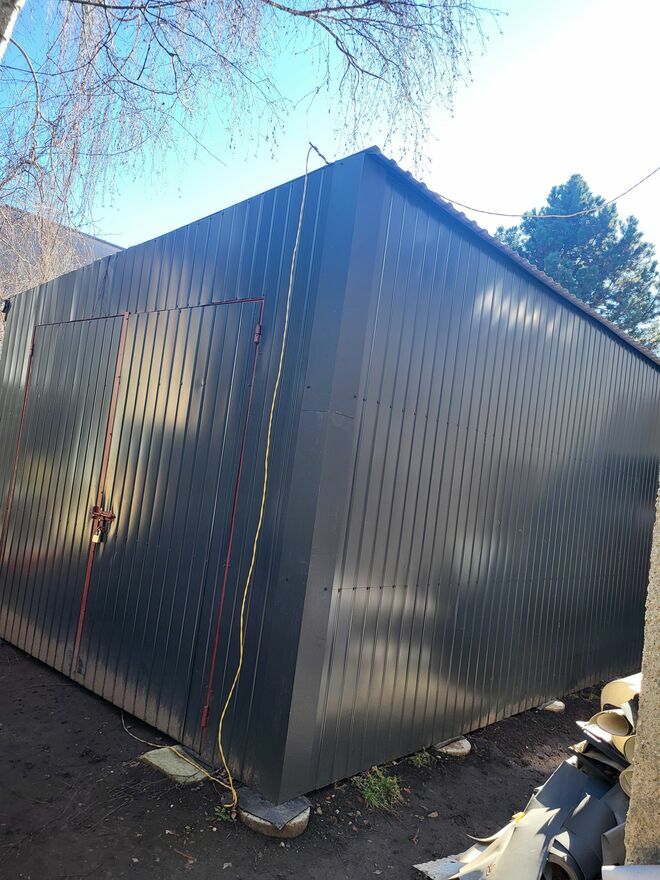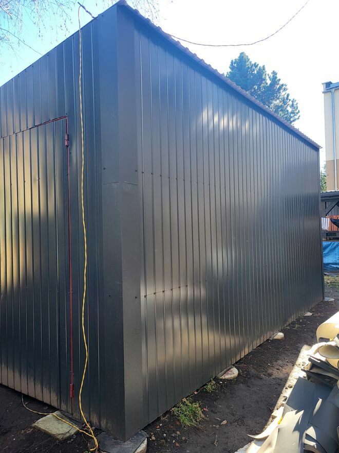 Sprzedam garaż blaszany / magazyn 4 × 6 m – solidny, wysoki, do demontażuSprzedam garaż blaszany w bardzo dobrym stanie, stabilny i szczelny. Idealny jako garaż, magazyn, warsztat.