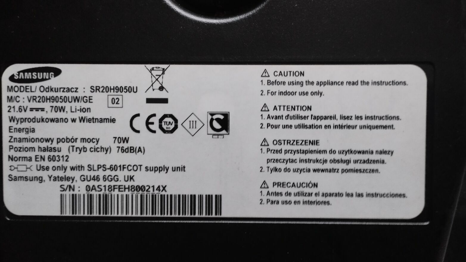 Sprzedam odkurzacz samobieżny Samsung Cyclone Force SR20H905