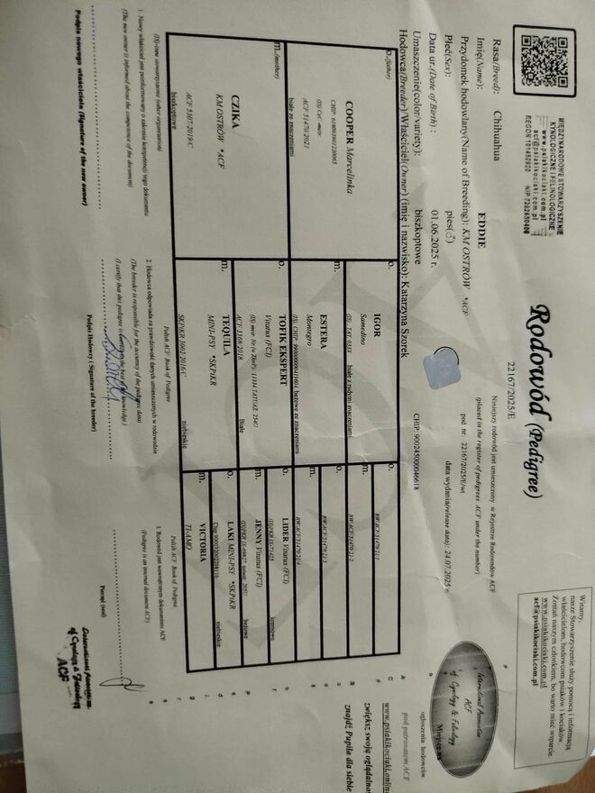 rodowód: tak