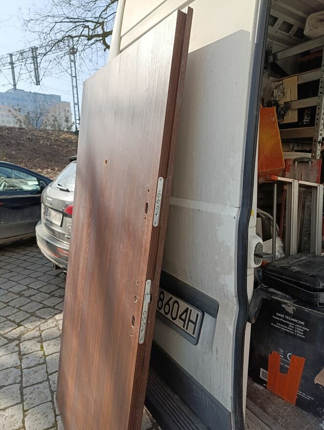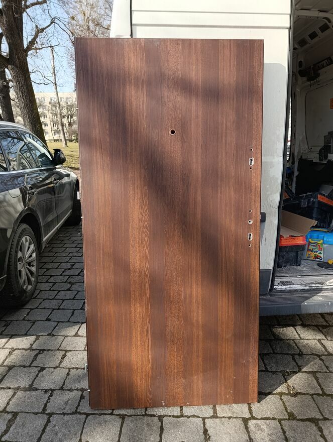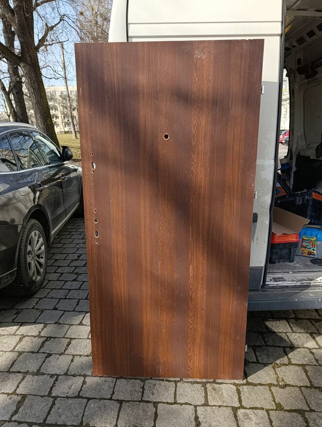 Drzwi solidne , pełne . Do tymczasowego zabezpieczenia idealne. Używane 2 miesiące , nowe kosztują prawie 1000zł. Do drzwi dokładam klamkę nie używaną , widoczną na foto.Na terenie Wrocławia mogę dowieżć za 80zł.