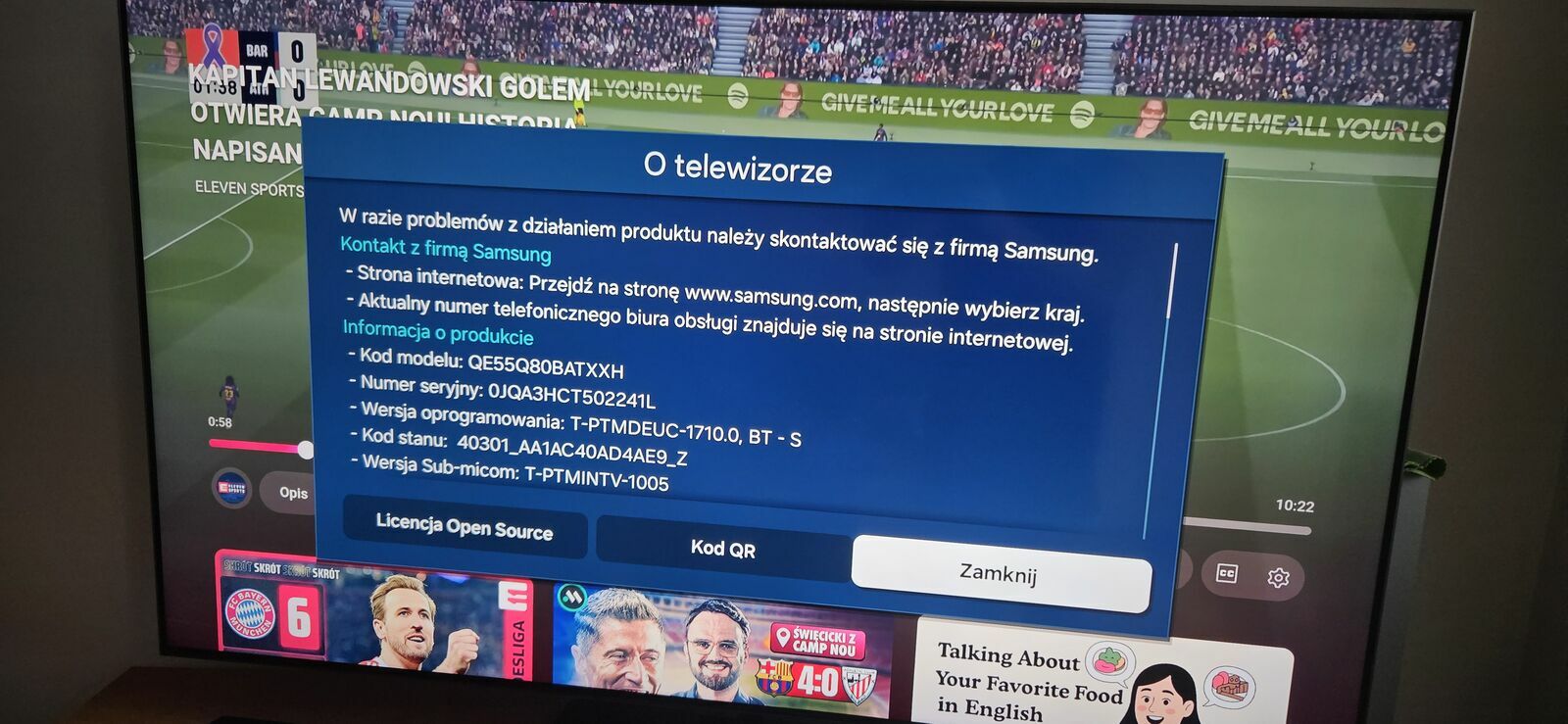 Samsung qe55q80b model z grudnia 2022 4 k hdr 120 Hz 55 cali sprzedaje bo za mały już dla mnie działa super kolory mega tylko 2 małe minusy jednen to nie mam zaslepki z tyłu na kable i na ekranie po prawej stronie jest lekki pionowy pasek biały ale go widać na białym tle to to super działa ,śmiało można SMS pisać lekka negocjacja możliwa ale tylko odbiór osobistySebastian