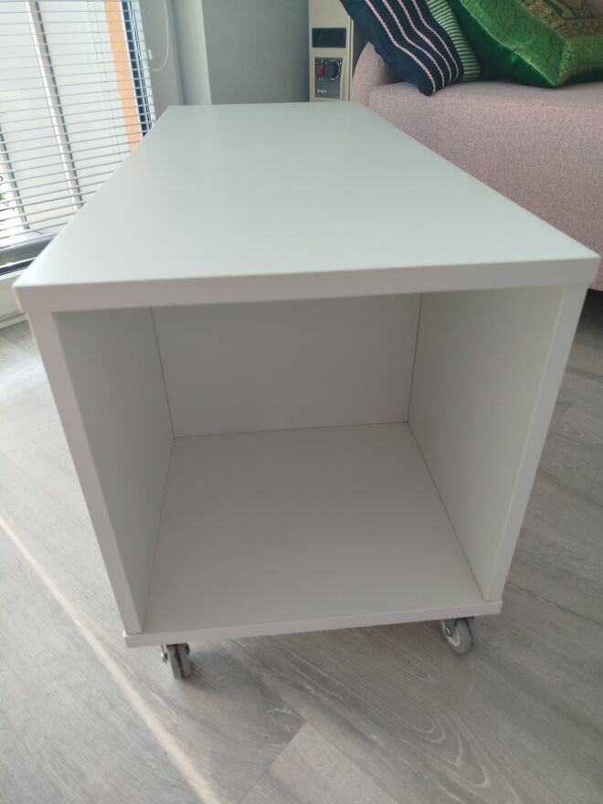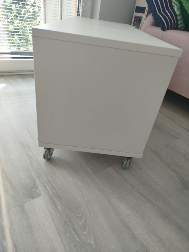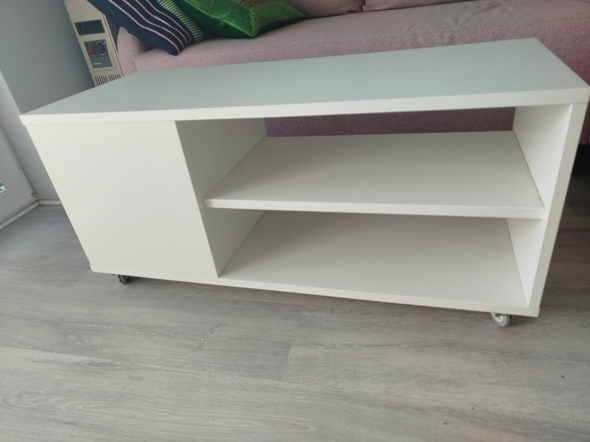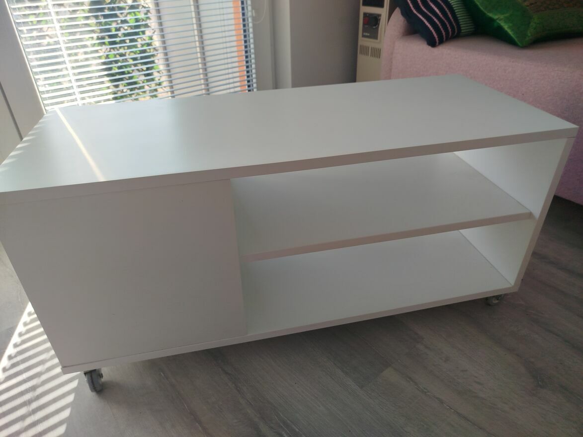 Sprzedam stolik kawowy Vihals z Ikei, biały, dl. 91 cm, szer. 37 cm, wys. 45 cm, w doskonałym stanie, praktycznie nie używany,jak nowy.Stolik posiada półki do przechowywania rzeczy, a kółka ulatwiaja przesuwanie. Odbiór w zakresie własnym.Monika