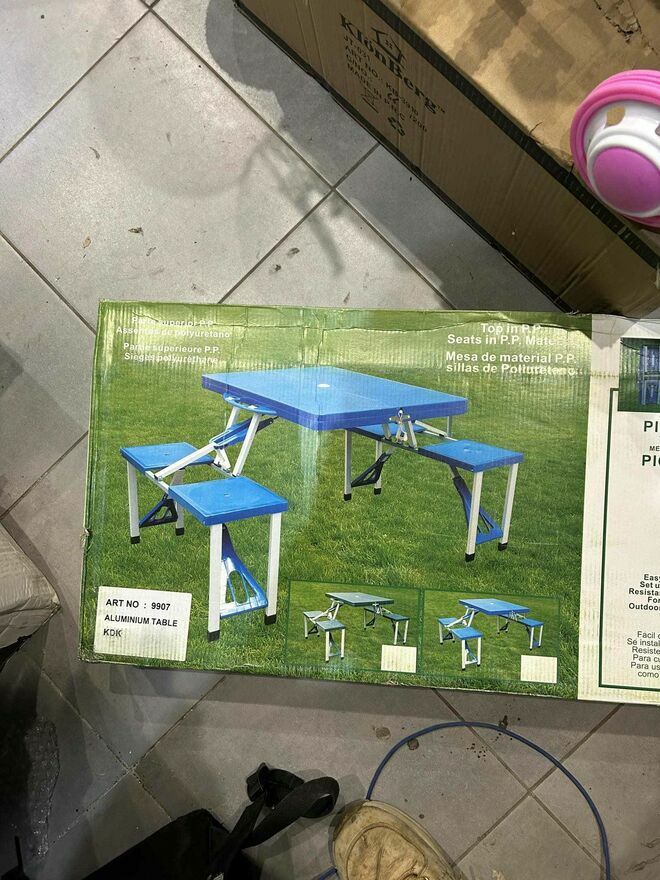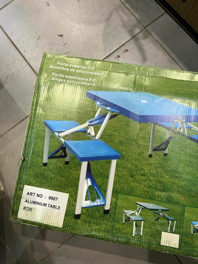 - ŁATWY MONTAŻ – zestaw rozkłada się jak i składa zaledwie w niecała minutę. Wystarczy otworzyć walizkę, wyjąć i rozłożyć krzesełka, rozłożyć nóżki oraz je zabezpieczyć. Blat stołu jest jednocześnie walizką, w której możemy schować krzesełka. Stół posiada zabezpieczenia, dzięki którym nie ma ryzyka, że podczas transportu walizka się nie otworzy.