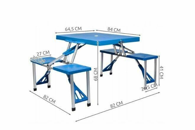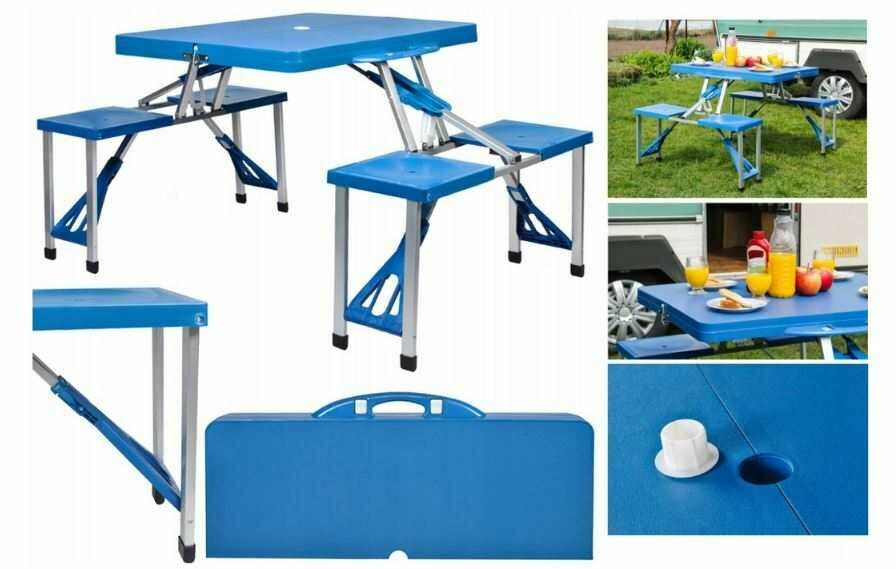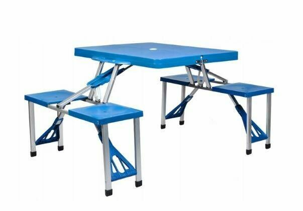 Witam,W ofercieNIEBIESKI ZESTAW TURSTYCZNY/PIKNIKOWY - Stolik Stół Rozkładany Składany + 4 SIEDZENIA.