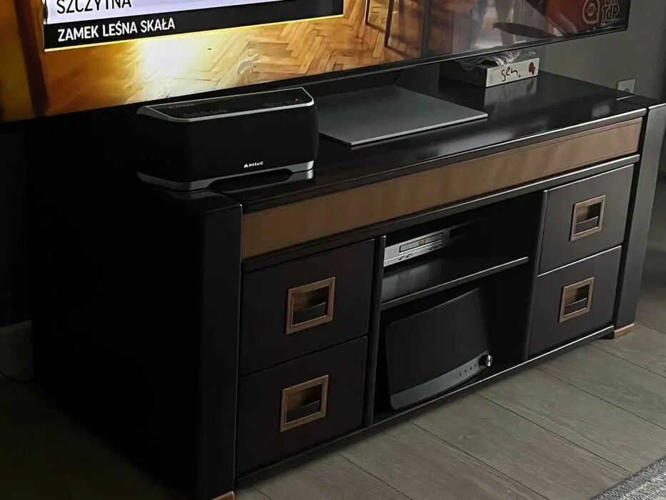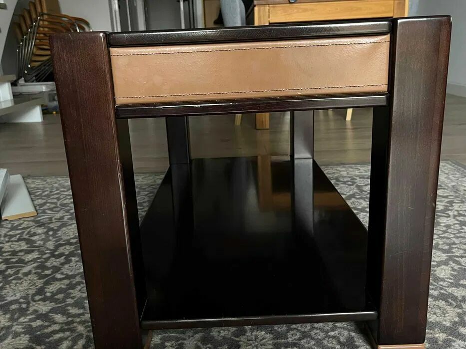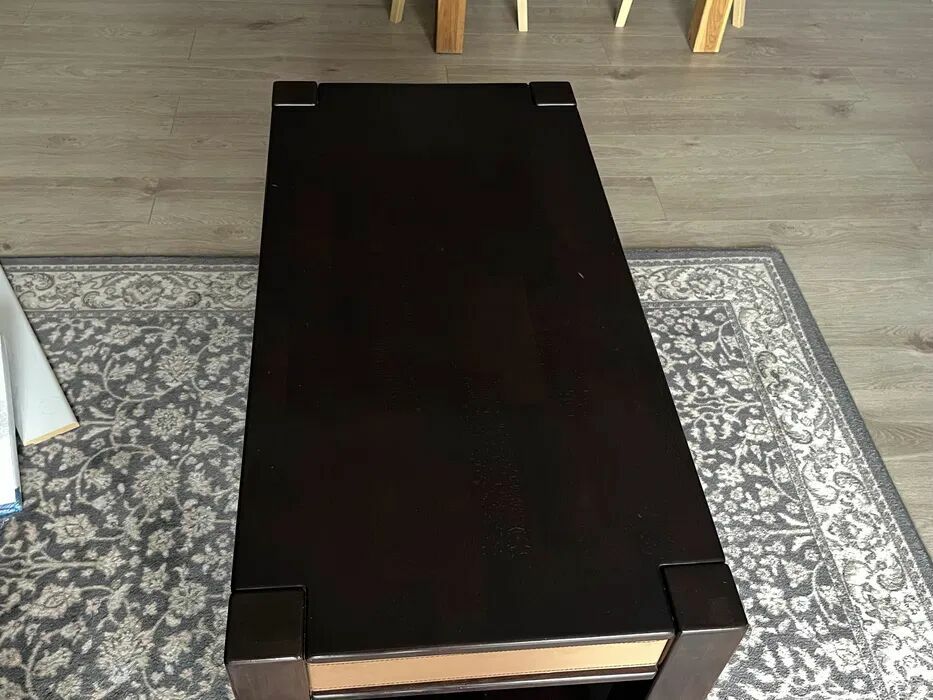 Sprzedam stolik RTV w komplecie z ławą z litego drewna czereśniowego w kolorze wenge ze wstawkami skórzanymi w kolorze karmelowym. Na obu meblach są ryski, a na ławie są 2 malutkie wgniecenia. Po więcej informacji zapraszam na priw. Cena 150 zł za sztukę.Sprawdź zainteresowanie tym ogłoszeniem