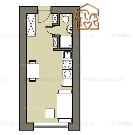 Składa się z pokoju z aneksem kuchennym i łazienki.