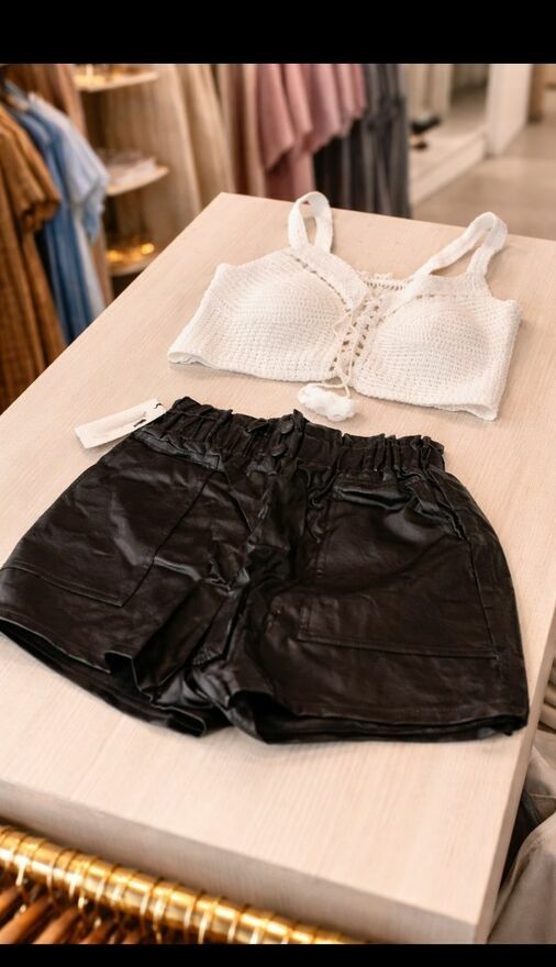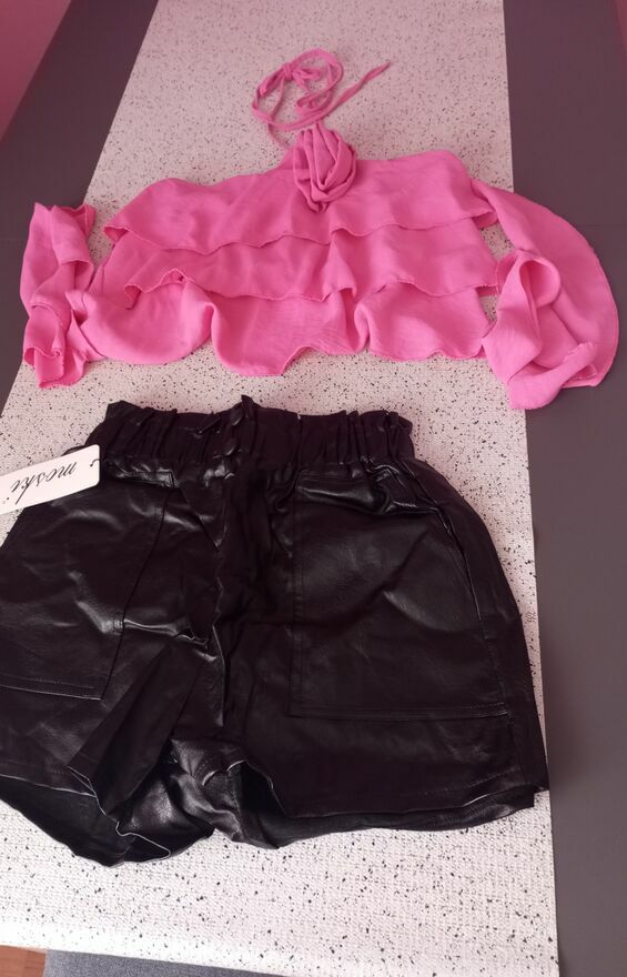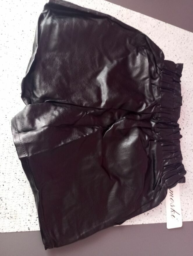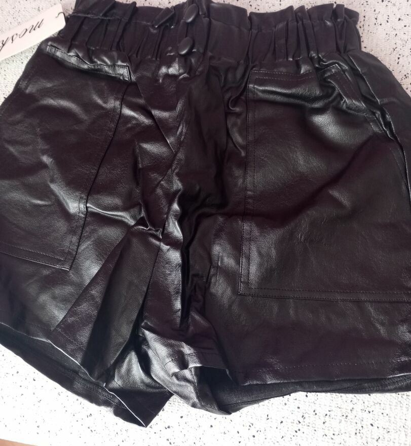 Modne szorty z eko-/skóry. Efektowny fason z wysokim stanem i ozdobnymi guzikami.Stylowe i wygodne. Idealne do botków,kozaków czy obuwii sportowych. Świetnie podkreślają talie pasując zarówno do koszuli,swetra jak i topu. Rozmiary S/M L/XL 2XL/3XL. Wysyłka za pobraniem lub do porozumienia;)Karolina