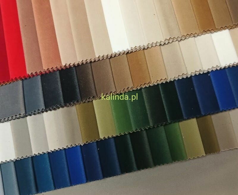 Kolor: srebrny, stalowy, ciemny lazur, turkus, kobaltowy, niebieski, szafirowy, granat, zielony butelkowy, zielony szary, zielony intensywny, zielony, oliwka, zgniła zieleń, irchowo szary, żwirowo szary, szary jedwabisty, szara platyna, jasno szary, zimny popielaty, jasny popielaty, popielaty, szary, stalowy, szaro czarny, czarny, ciemny brąz, czekoladowy, kakaowy, cynamonowy, orzechowy, zimny beż, latte, śmietankowy, biały, beżowy, ciemny beż, brzoskwinia, różowy, róż indyjski, czerwony, purpurowa czerwień, rudy, miodowy