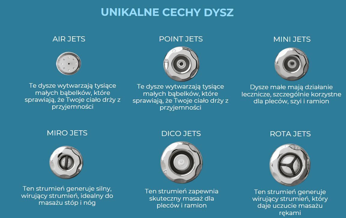 wyposażone w dysze masujące, oferują kompleksową stymulację ciała, zapewniając relaks i odprężenie