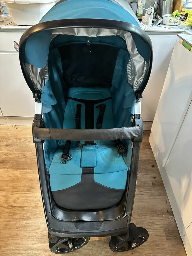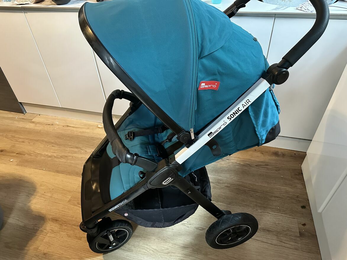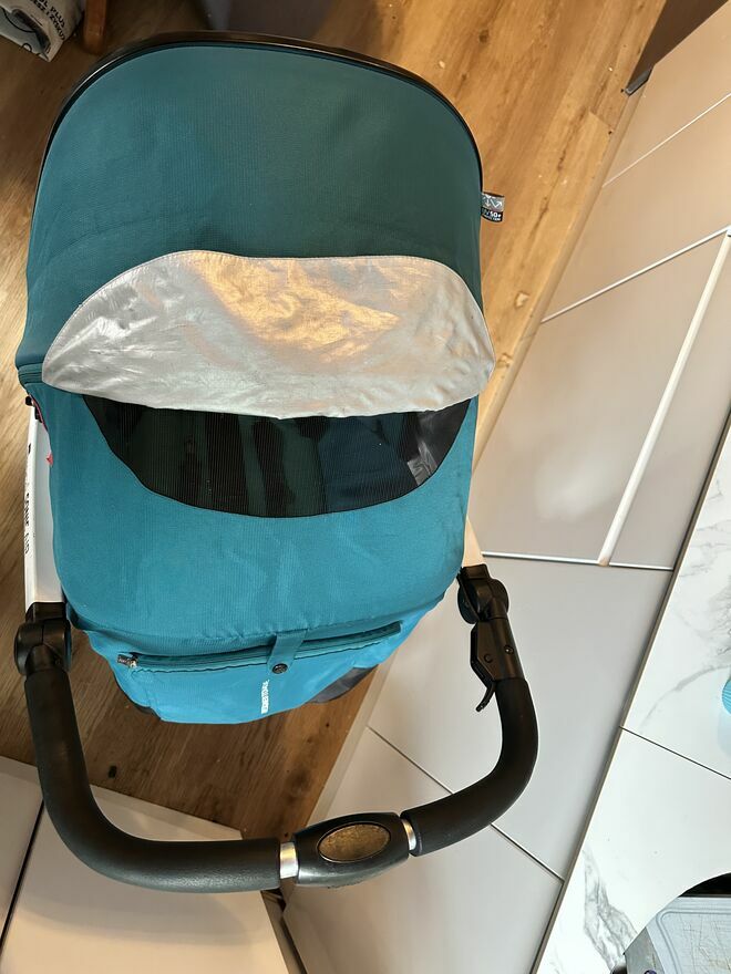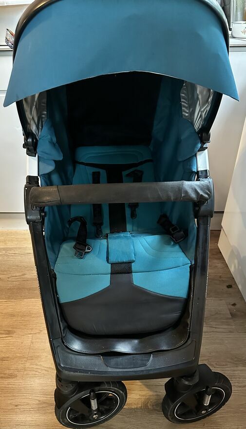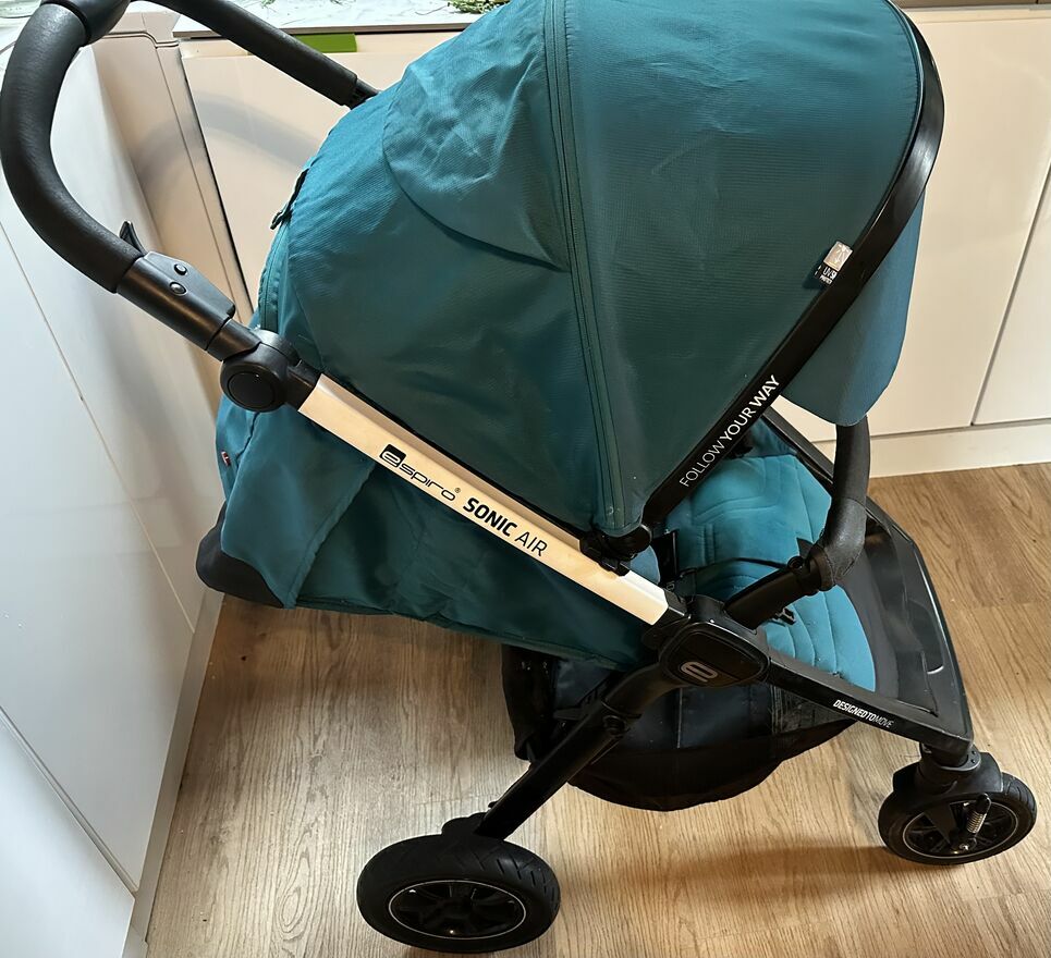 Wózek w bardzo dobrym stanie wykorzystany 7 miesięcy. Koła dmuchane ciale..Bardzo fajny lekki do 22 kg. Super składany.Delikatnie rysu nie widać . Wszystko działa!!! Jak nowy.Odbior osobisty we Wrocławiu ul Zachodnia.Ksenia