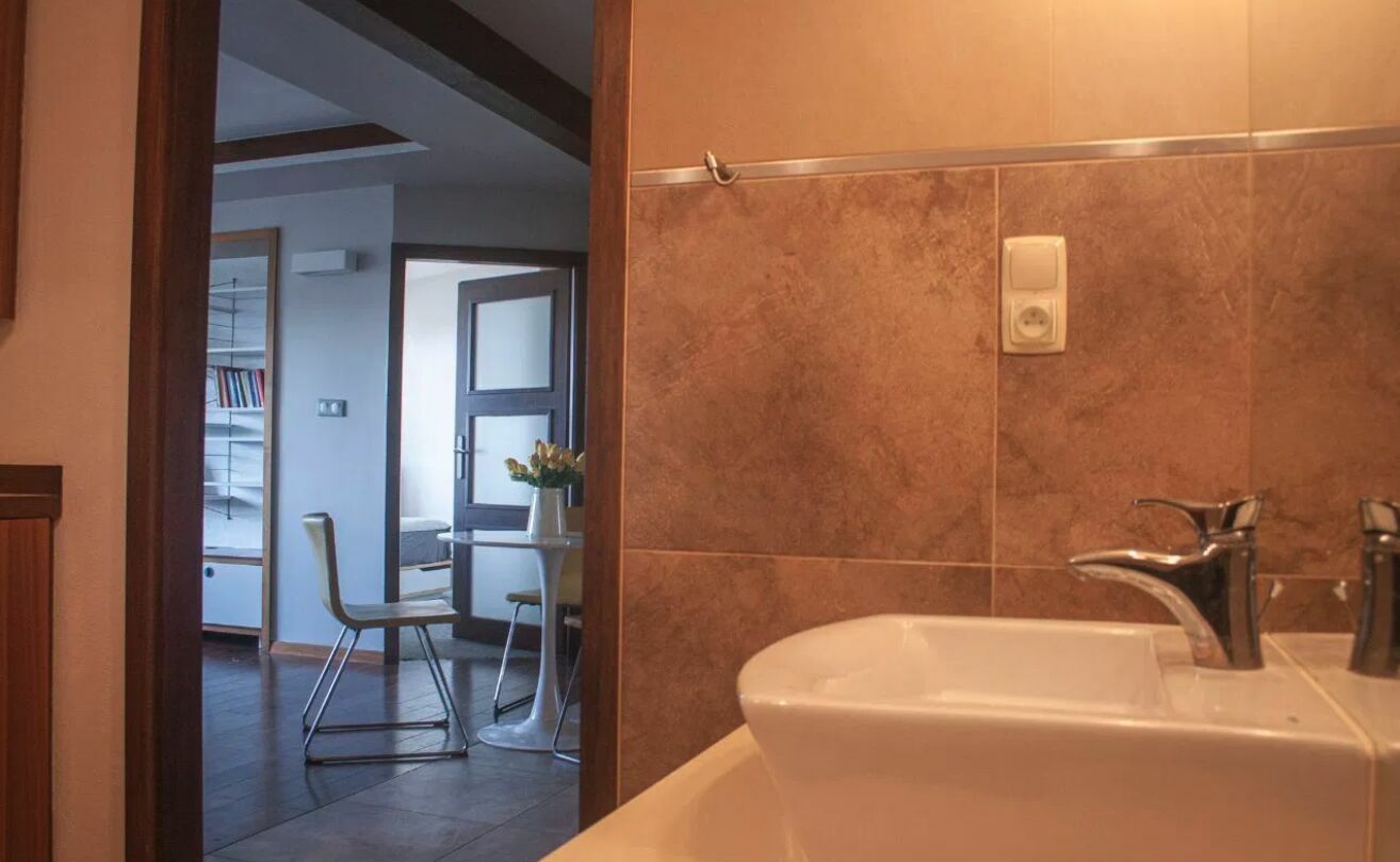 * Łazienka (6 m²) – wanna z prysznicem, nowa pralka kupiona w 01.2026, komfort i niezawodność na co dzień