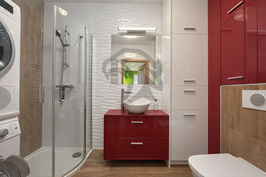 Łazienka – z kabiną Sanswiss i funkcjonalną zabudową stolarską