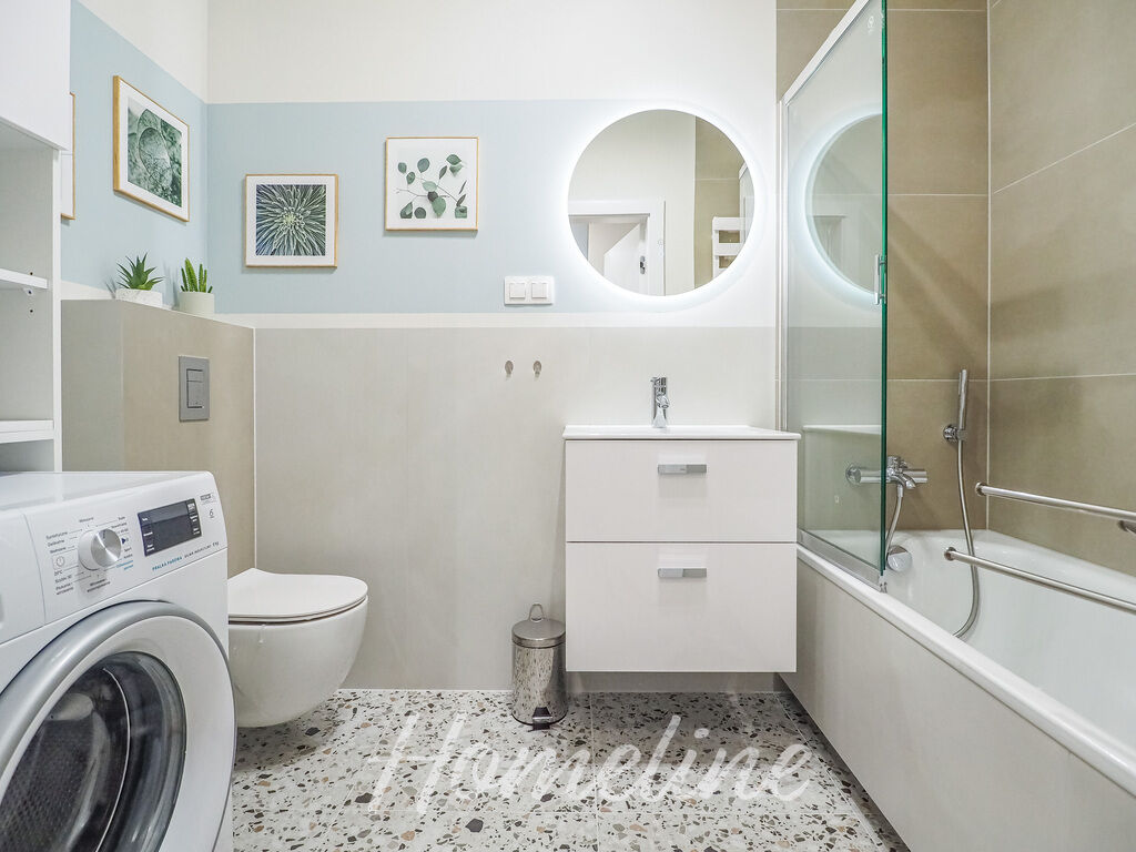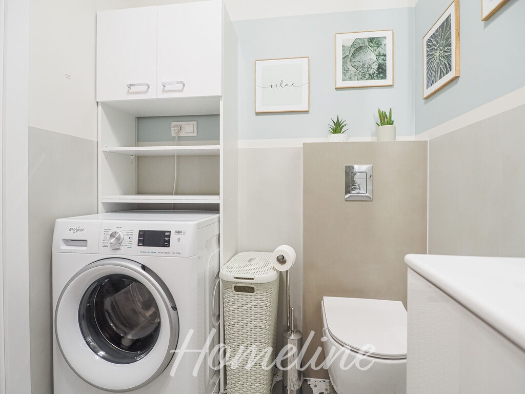 - łazienki z wanną, pralką i toaletą.