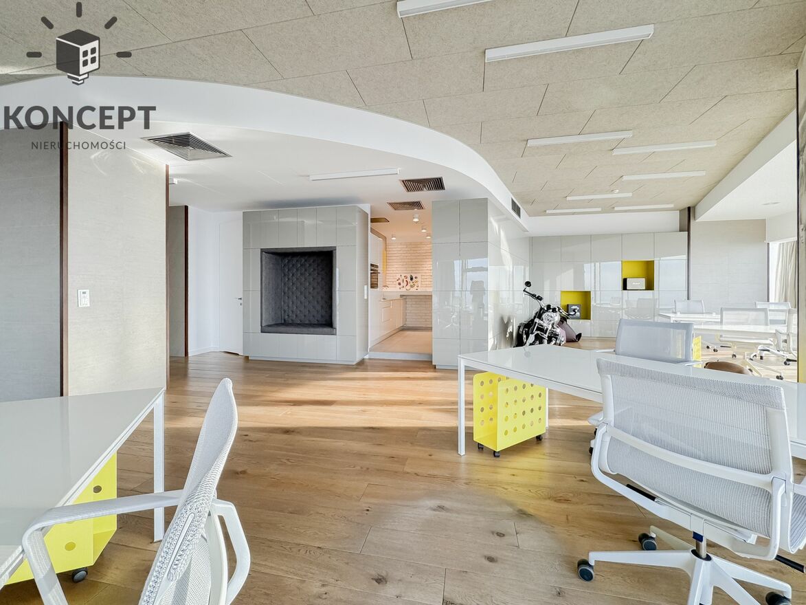 Biuro wyróżnia się nie tylko wysoką jakością wykończenia, ale również wyjątkową lokalizacją, zapewniającą ciszę, spokój oraz spektakularną perspektywę na miasto. To przestrzeń sprzyjająca koncentracji, podejmowaniu kluczowych decyzji oraz pracy koncepcyjnej.