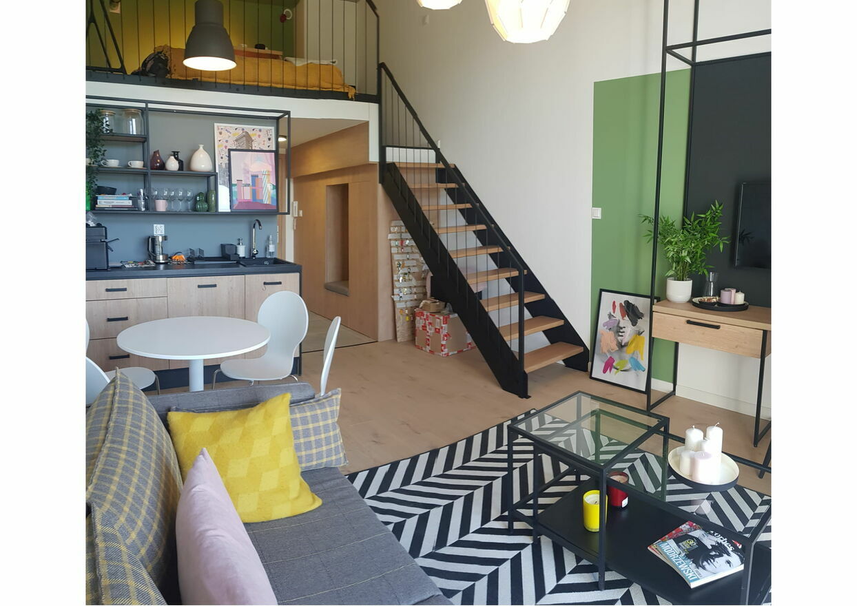 Mieszkanie znajduje się przy ul. Zarembowicza 35 we Wrocławiu na pierwszym piętrze w budynku czteropiętrowym. Mieszkanie składa się z przedpokoju, salonu wraz z aneksem kuchennym z wyjściem na zadaszony balkon, antresoli z dużym łóżkiem oraz łazienki.