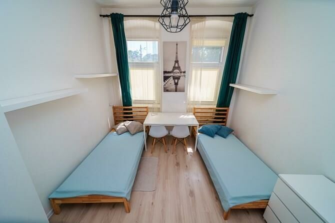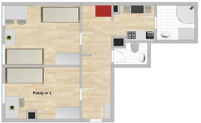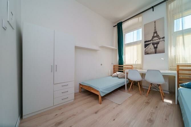 Pokój 1: dwa łóżka, biurko, komoda, szafa ubraniowa, dwa krzesła